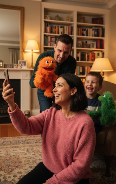 Pop&Go Tales es un sistema de cuentos personalizados que combina una app con títeres de mano artesanales. La app genera historias únicas con IA, que después retoco para darles calidez y coherencia. Los padres leen el cuento desde el móvil y junto los niños lo representan con los títeres, creando un juego familiar sencillo, creativo y lleno de imaginación.